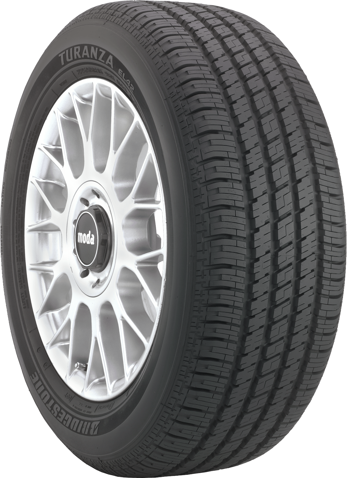 The Bridgestone Turanza EL42 is a standard all-season tire. It comes as original equipment on some luxury sedans, crossovers and minivans. The Turanza EL42 resembles a performance tire. The Turanza EL42 is an all-season tire that handles well in wet and light snow conditions and gives a nice smooth, quiet ride in the process.
